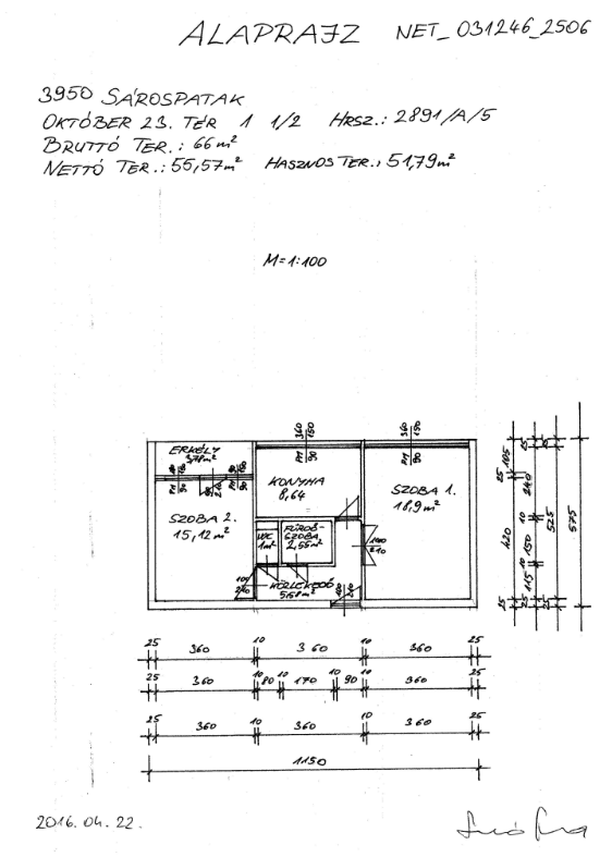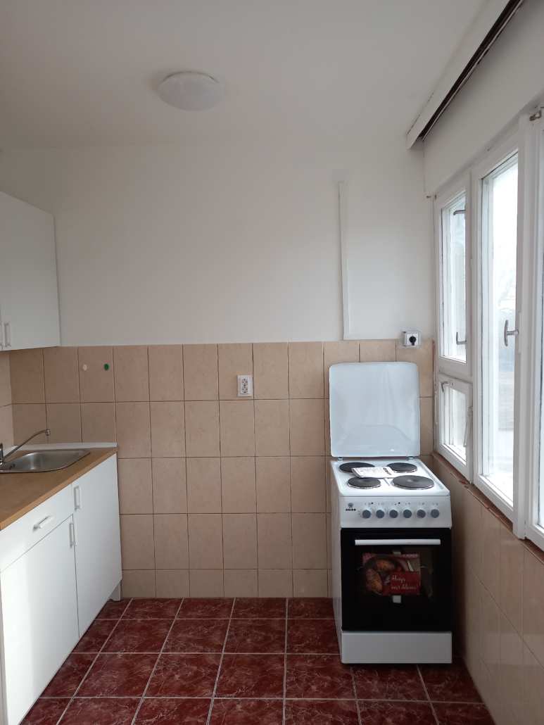 Helyiségek: előszoba, konyha, fürdőszoba, wc, 2 szoba