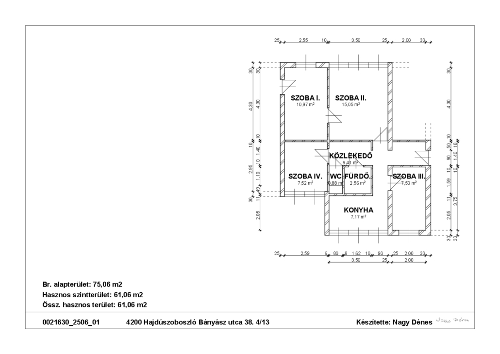 Helyiségek: előszoba, konyha, fürdőszoba, wc, 1+3 félszoba