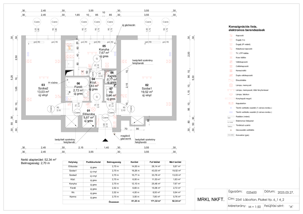 Helyiségek: előszoba, konyha, fürdőszoba, wc, 2 szoba