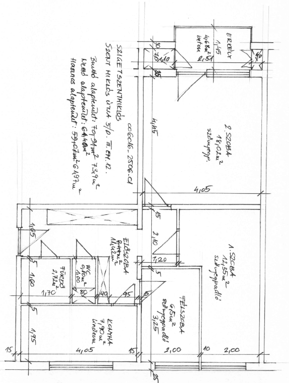 Helyiségek: előtér, konyha, közlekedő, fürdőszoba WC, 2,5 szoba